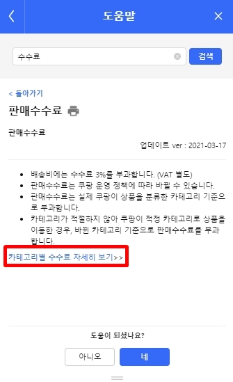 도움말 항목에서 수수료를 검색하시고 판매수수료를 클릭