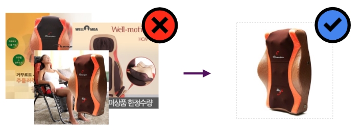 - 로고나 문구, 배송예정일 등 지저분한 홍보 요소는 빼기