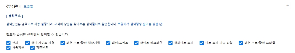 직접 입력할 시 필터에서 제외돼 내상품이 검색결과에 보이지 않는 일이 일어납니다.